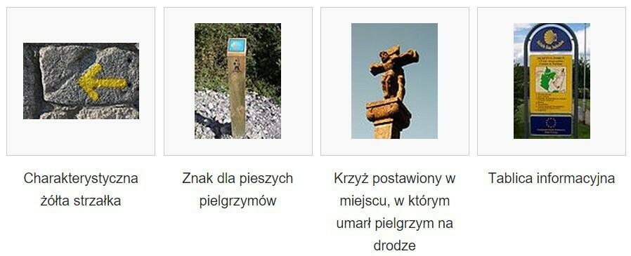 Drogi św. Jakuba są oznaczone podobnie w całej Europie, muszlami św. Jakuba i żółtymi strzałkami. Występują one jednak w różnych wersjach graficznych: